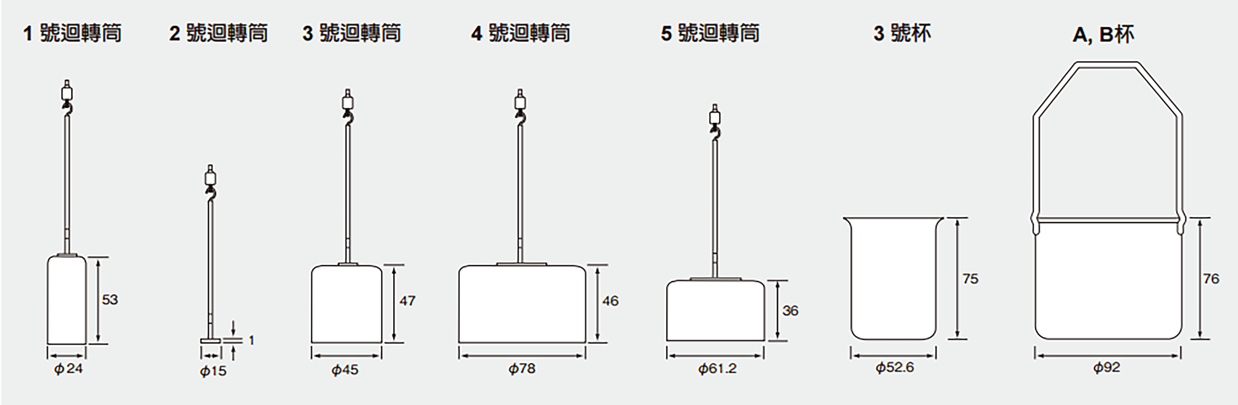 迴轉筒與量杯(單位:mm)