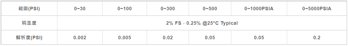 | 壓力精準度 | |||||||