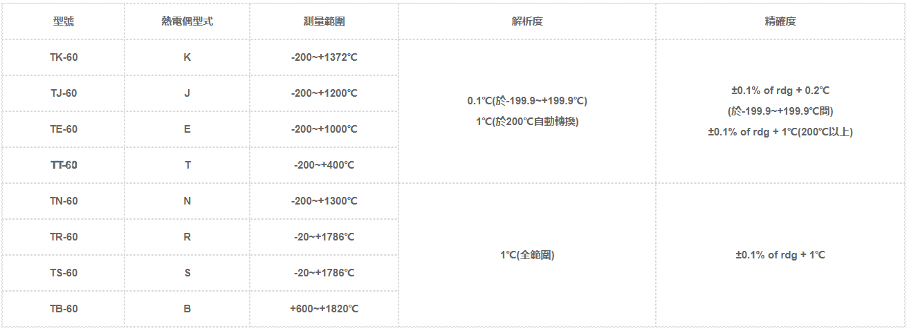 | 溫度補償功能 | 依照T/C 類型,自動切換冷端接點補償 | ||||||